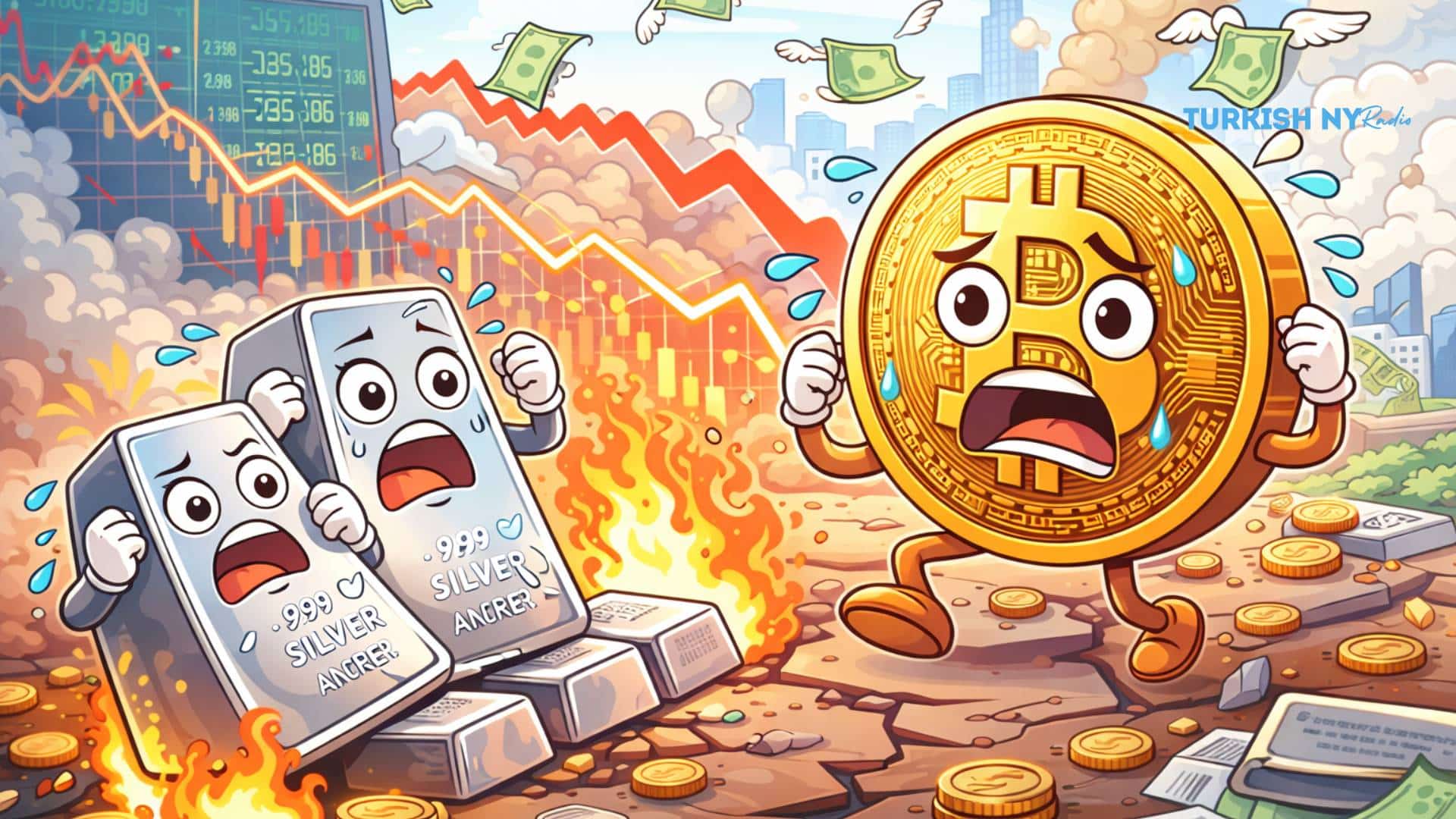Global markets are sliding again, and the selling is starting to look less like sentiment and more like a collateral squeeze. Bitcoin has dropped about 24% in roughly a week, falling from around $90,076 to as low as $65,200, while silver is down about 34% over the same window.